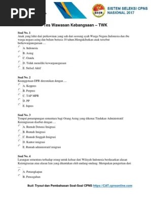 soal latihan dan pembahasan tes cpns tahun 20212022 twk tiu dan tkp pdf.