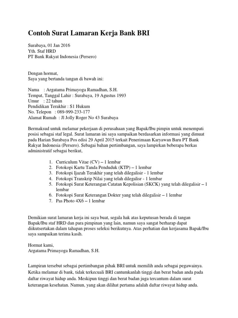 Banyak lulusan kuliah yang ingin mencoba melamar kerja ke bank bri entah itu sebagai frontliner (customer service & teller) maupun bagian survey lapangan ( contoh surat lamaran bri. Kerja bank bri sebagai teller, contoh surat lamaran kerja bank tanpa posisi, .
